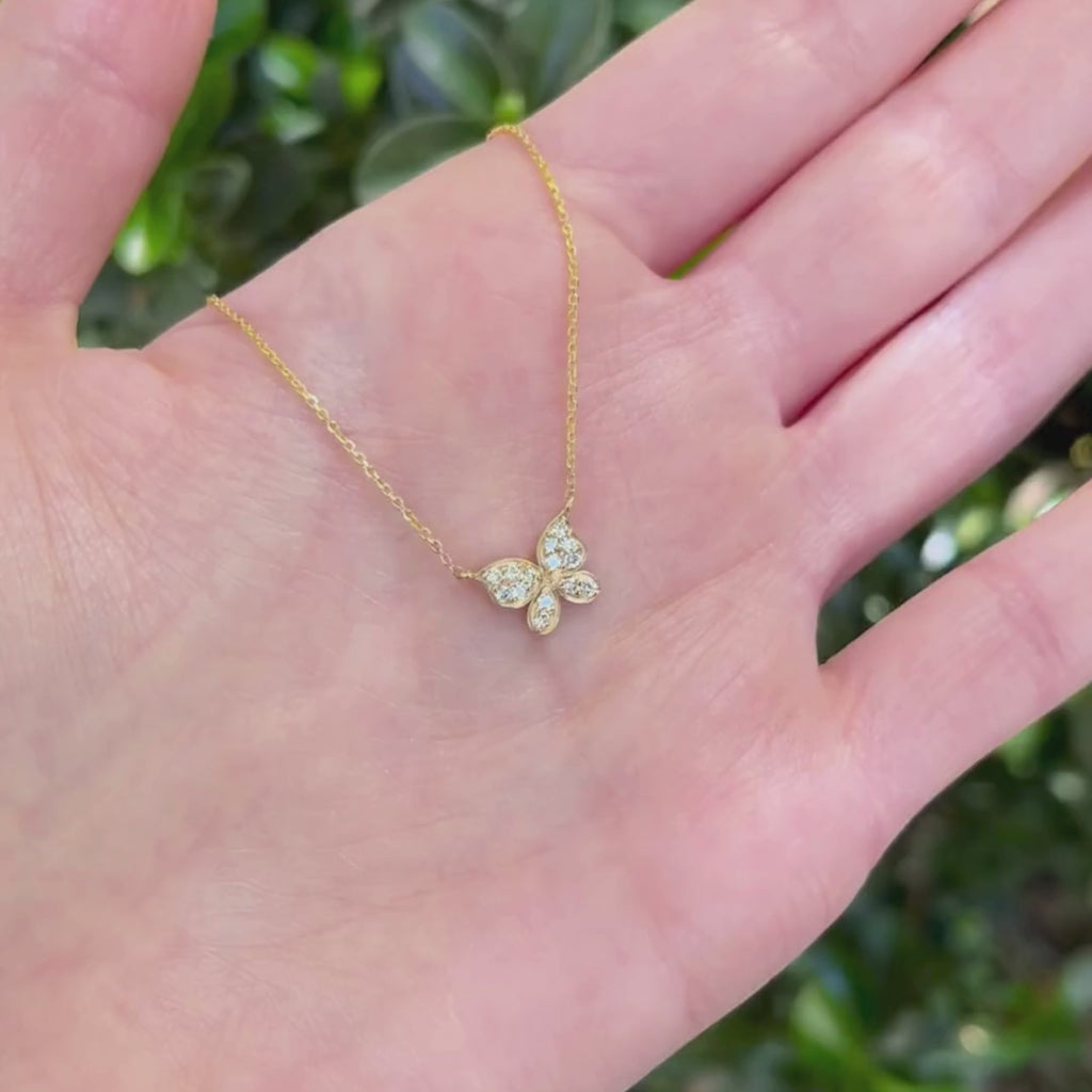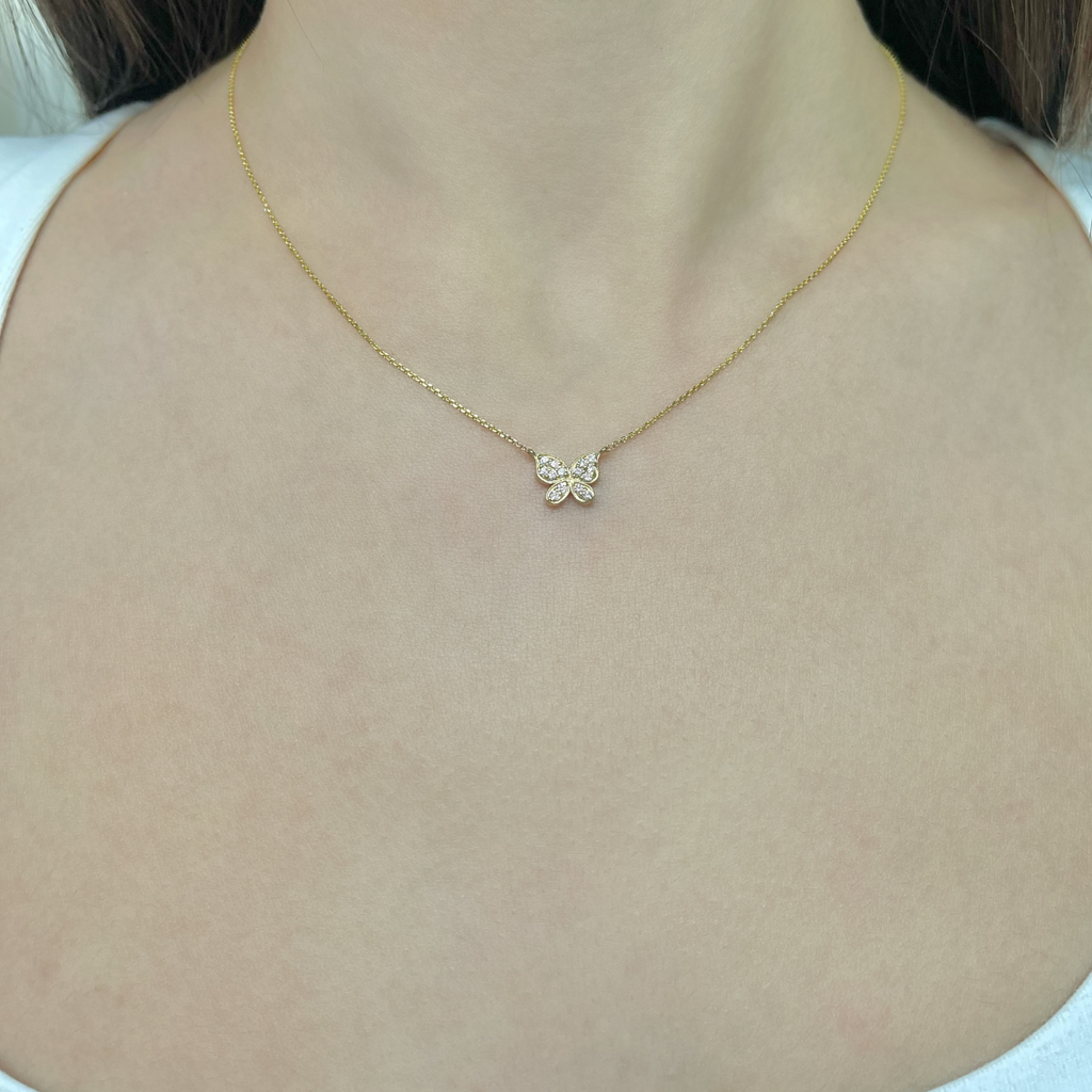 This fun yet elegant piece features a mesmerizing array of diamonds, creating a captivating sparkle with every movement. This pendant is a beautiful addition to your collection that is sure to add a smile to your face. 🦋